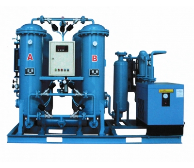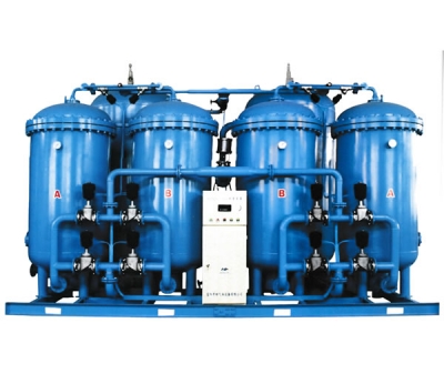 由于碳分子篩對(duì)氧的吸附容易隨壓力的不同兩者有明顯差異,降低壓力,即可解吸碳分子篩吸附的氧分子,使碳分子篩再生,得以重復(fù)循環(huán)使用。采用兩個(gè)吸附干塔流程,一塔吸附產(chǎn)氮,一塔解吸再生,通過(guò)PLC程序控制氣動(dòng)閥的啟閉,使兩塔循環(huán)交替,連續(xù)產(chǎn)出高品質(zhì)氮?dú)狻?/span>